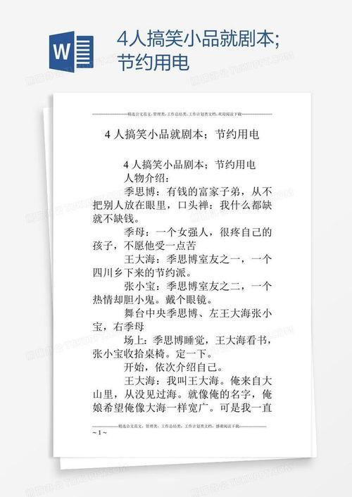 你知道吗?最近我在网上发现了一个超级搞笑的小品剧本,简直笑得我肚子都疼了!这个剧本是由6个人共同演绎的,每个角色都个性鲜明,笑料百出。今天,就让我带你一起走进这个充满欢乐的世界,感受一下这6人搞笑小品的魅力吧!